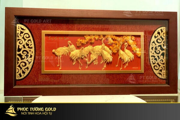 Bức tranh ấy cảm hứng kết hợp giữa hình ảnh chim hạc và cây Tùng. Tranh vừa đem đến sự may mắn vừa mang đến năng lượng tích cực tác động lên phong thủy của ngôi nhà